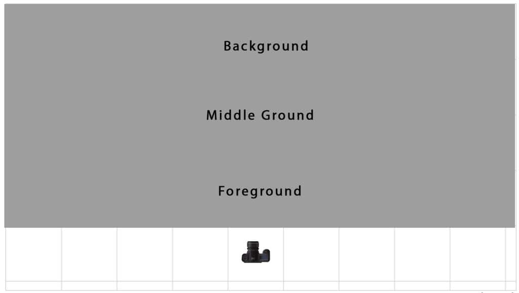 Foreground is the zone closest to camera, background is the zone furthest from camera, and your middle ground lies in between those two.