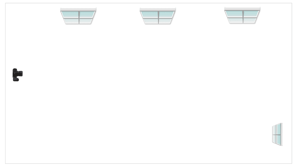 Three windows along one side would be ideal, but a more realistic room would be something like the following, with just one window in the middle ground.